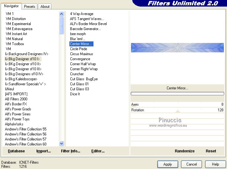 Effects>Plugins>Filters Unlimited 2.0 - &<Bkg Designer sf10I> - Center Mirror, default settings.