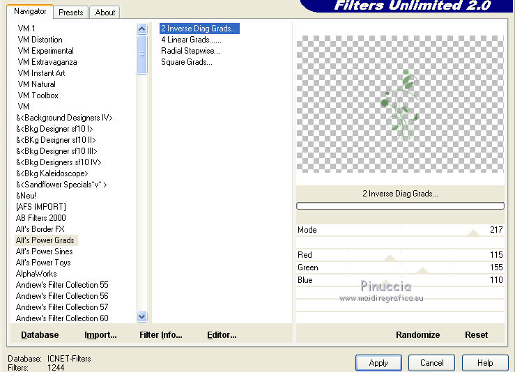 Effects>Plugins>Filters Unlimited 2.0 - Alf's Power Grads - 2Inverse Diag Grads