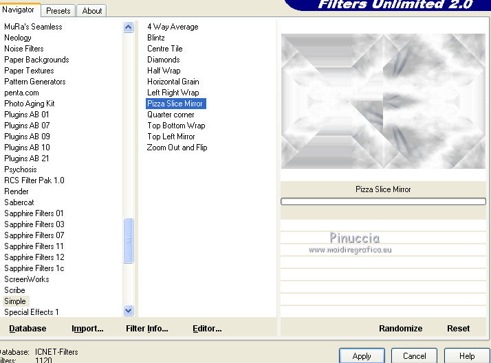 Effects>Plugins>Filters Unlimited 2.0 - Simple - Pizza Slice Mirror