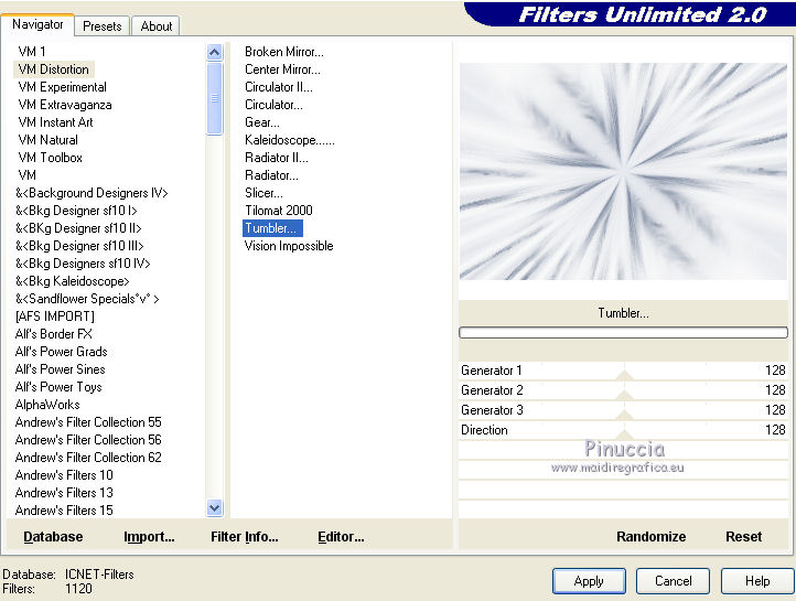 2. Effects>Plugins>Filters Unlimited 2.0 - VM Distortion - Tumbler, default settings.