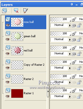Close the layer green ball and open the layer rose ball.
