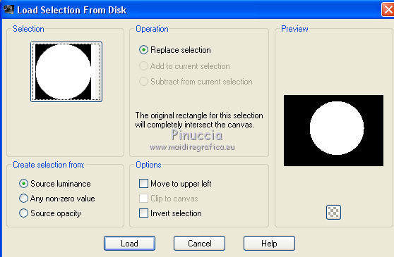 7. Selections>Load/Save Selection>Load Selection from Disk.