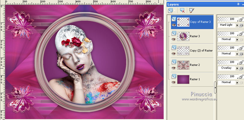23. Change the Blend Mode of the layer Raster 2 to Overlay.