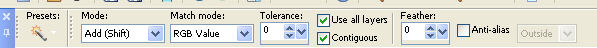 4. Activate the Magique Wand tool (I used these settings)