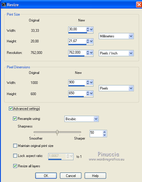 Image>Resize, 900 x 650 pixels, look aspect ratio not checked.