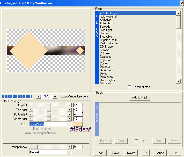 29. Effetti>Plugins>VanDerLee - Unplugged-X - 45º Rectangle - colore #f9deaf.