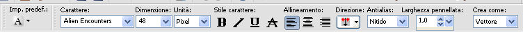 77. Attiva lo strumento Testo , font Alien Encounters