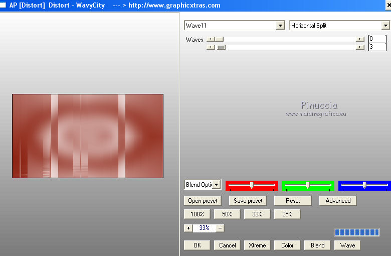 10. Di nuovo Effetti>Plugins>AP 01 [Distort] - Distort-WavyCity, con i seguenti settaggi