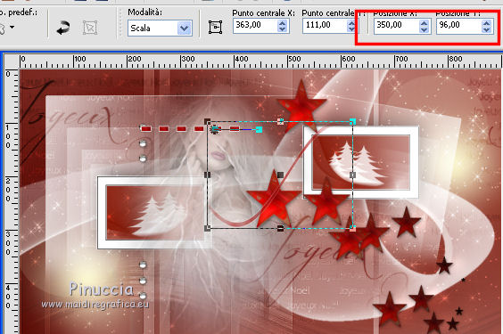 e imposta Posizione X: 350,00 e Posizione Y: 96,00