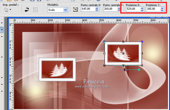 e imposta Posizione X: 529,00 e Posizione Y: 105,00