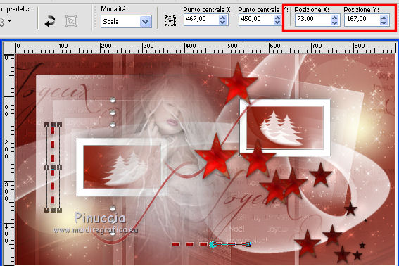 e imposta Posizione X: 73,00 e Posizione Y: 167,00