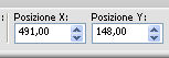Imposta Posizione X: 491,00 e Posizione Y: 148,00.