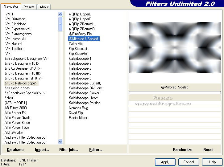 Effetti>Plugins>Filters Unlimited 2.0 - &<Bkg Kaleidoscope> - @Mirrored &Scaled