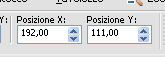 e imposta Posizione X: 192,00 e Posizione Y: 111,00.