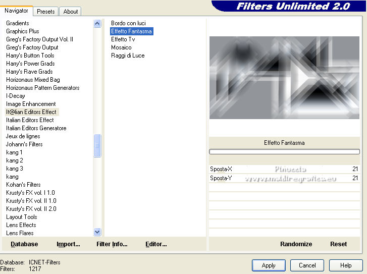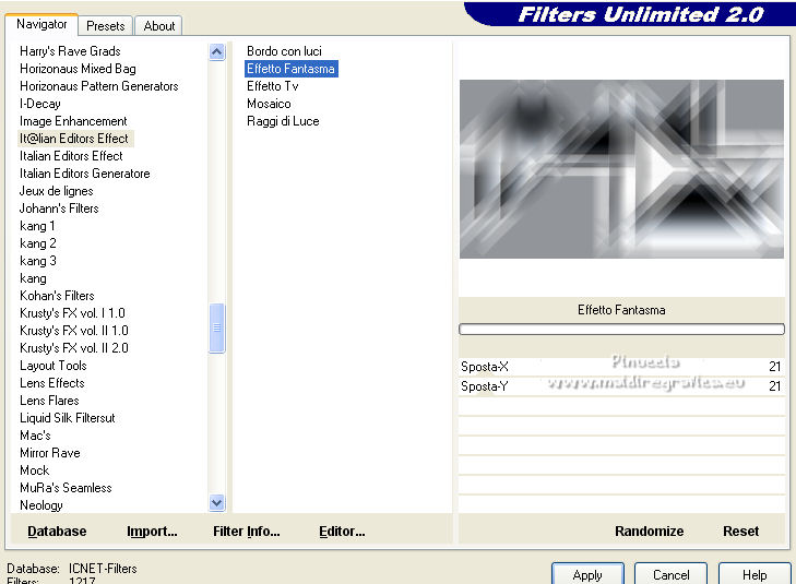 8. Effetti>Plugins>Filters Unlimited 2.0 - It@lian Editors Effect - Effetto Fantasma.