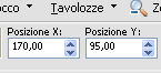e imposta Posizione X: 170,00 e Posizione Y: 95,00.