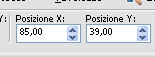 e imposta Posizione X: 85,00 e Posizione Y: 39,00