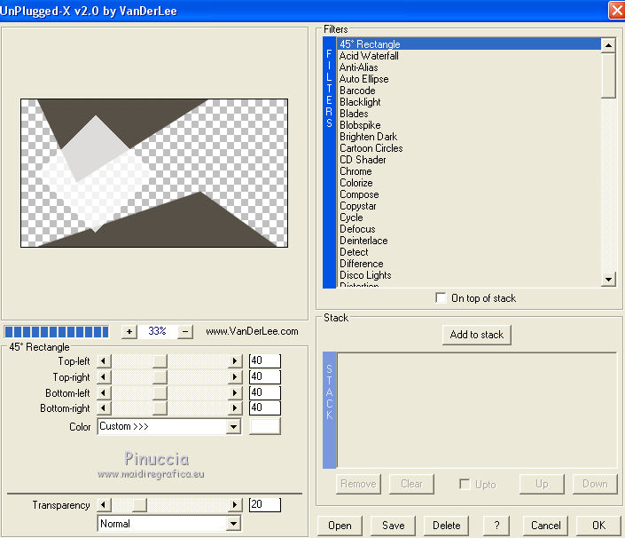 6. Effetti>Plugins>VanDerLee - Unplugged-X - 45° Rectangle.