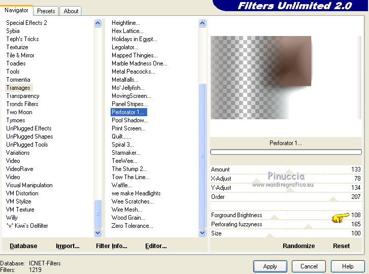 18. Effetti>Plugins>Filters Unlimited 2.0 - Tramages - Perforateur 1.