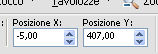 Imposta Posizione X: -5,00 e Posizione Y: 407,00.