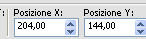 e imposta Posizione X: 204,00 e Posizione Y: 144,00.