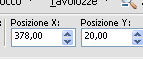 e imposta Posizione X: 378,00 e Posizione Y: 20,00