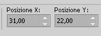 Imposta Posizione X: 31,00 e Posizione Y: 22,00.