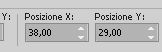 Imposta Posizione X: 38,00 e Posizione Y: 29,00.