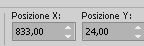 Imposta Posizione X: 833,00 e Posizione Y: 24,00.