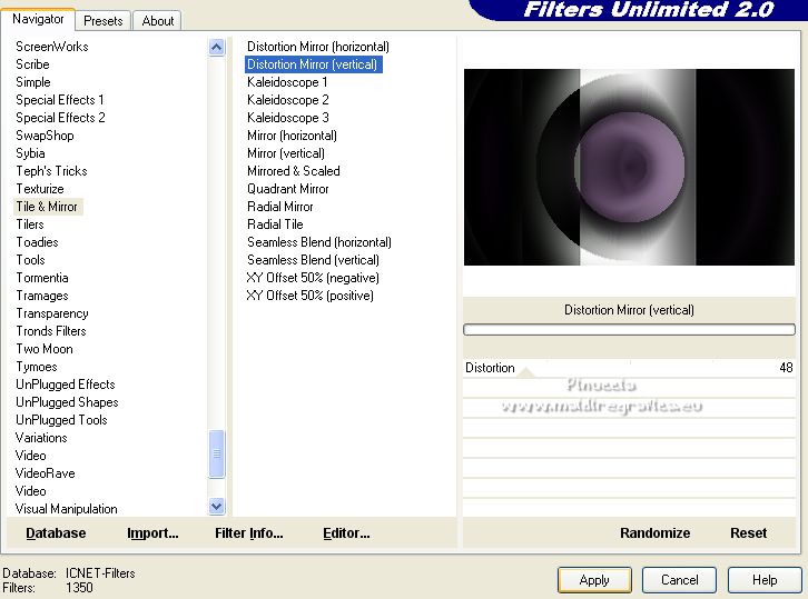 Effetti>Plugins>Filters Unlimited 2.0 - Tile & Mirror - Distortion Mirror (Vertical), con i settaggi standard.