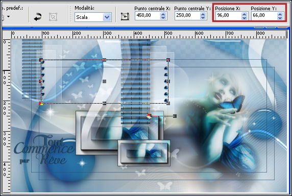 e imposta Posizione X: 96,00 e Posizione Y: 66,00