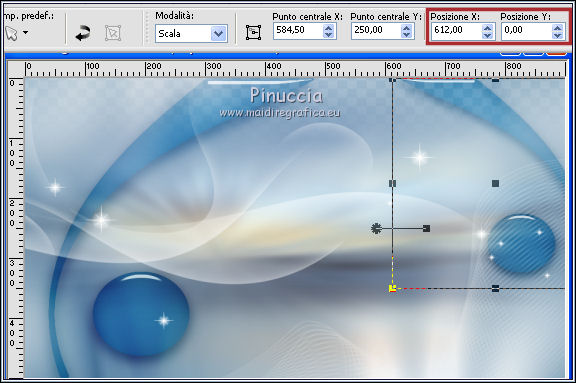 e imposta Posizione X: 612,00 e Posiziona Y: 0,00