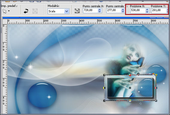 e imposta Posizione X: 538,00 e Posizione Y: 281,00