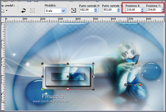e imposta Posizione X: 210,00 e Posizione Y: 234,00