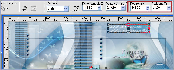 e imposta Posizione X: 543,00 e Posizione Y: 13,00