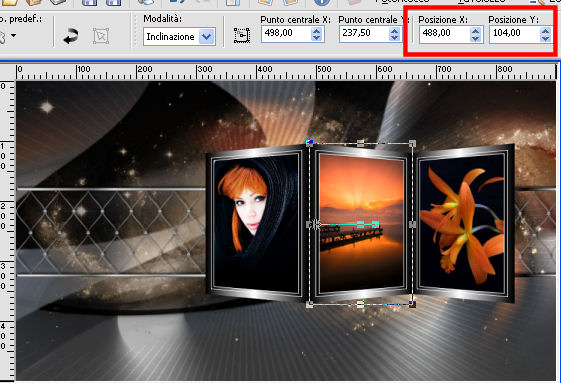 Imposta Posizione X: 488,00 e Posizione Y: 104,00