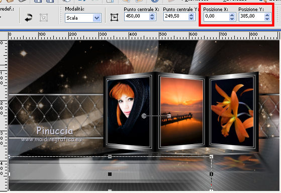 e imposta Posizione X: 0,00 e Posizione Y: 385,00