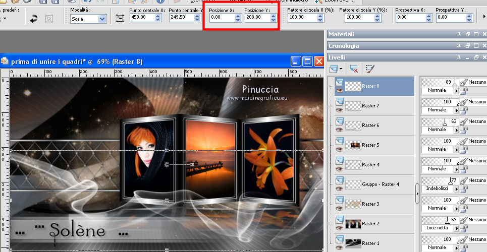 e imposta come prima Posizione X: 0,00 e Posizione Y: 208,00