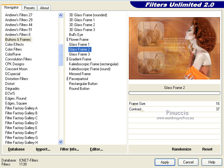 22. Effets>Modules Externes>Filters Unlimited 2.0 - Buttons & Frames - Glass Frame 2.