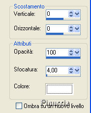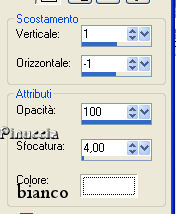 18. Effetti>Effetti 3D>Sfalsa ombra, con i seguenti settaggi, colore bianco.