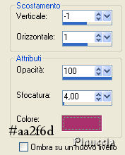 19. Effetti>Effetti 3D>Sfalsa ombra, con i seguenti settaggi, colore di primo piano.