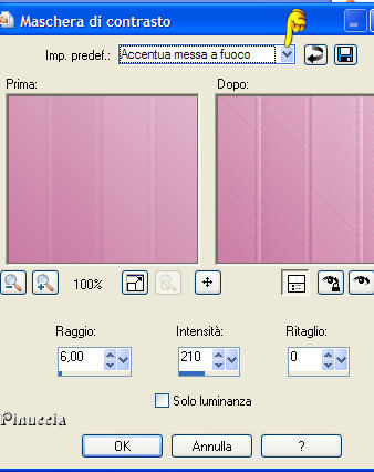 16. Regola>Metti a fuoco>Maschera di contrasto.