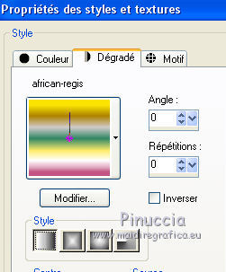 1. Placer en avant plan Dégradé et sélectionner le dégradé african-regis, style Linéaire.