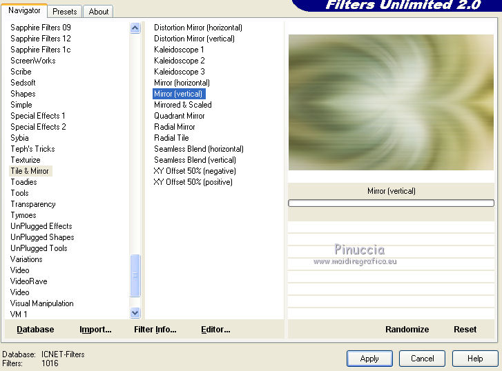 9. Effets>Modules Externes>Filters Unlimited 2.0 - Tile & Mirror - Mirror (vertical)