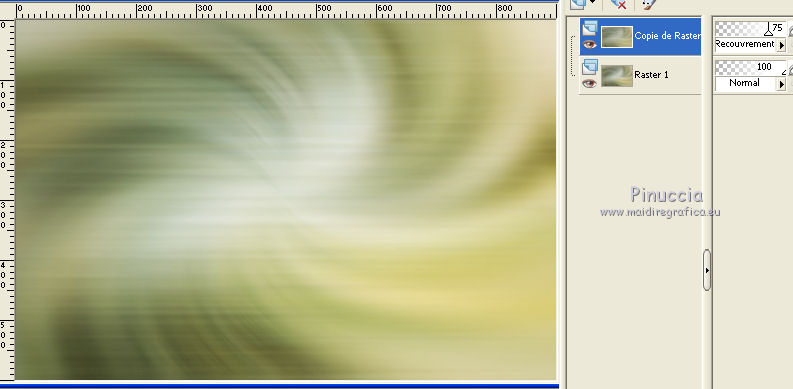Placer le calque en mode Recouvrement et réduire l'opacité à 75%.