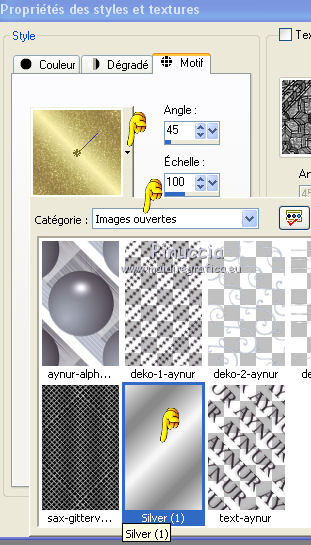 20. Placer en avant plan Motif et chercher, sous la catégorie Images ouvertes, le motif Silver_1.