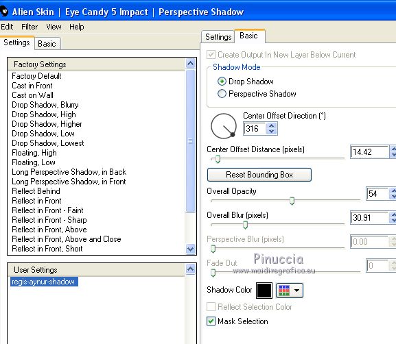 27. Effets>Modules Externes>Alien Skin Eye Candy 5 Impact - Perspective Shadow.