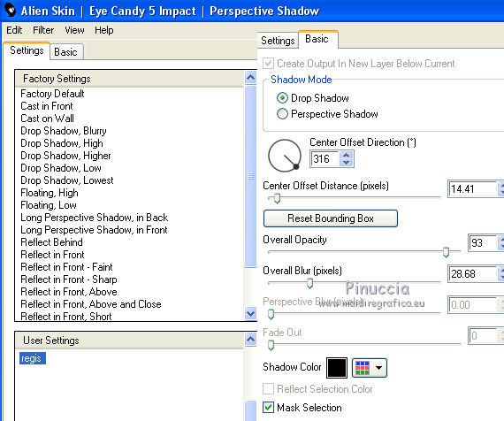 Effets>Modules Externes>Alien Skin Eye Candy 5 Impact - Perspective Shadow