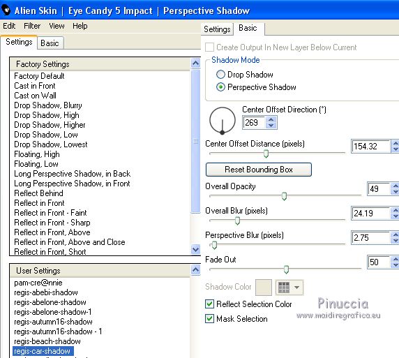 Effets>Modules Externes>Alien Skin Eye Candy 5 Impact - Perspective Shadow.
