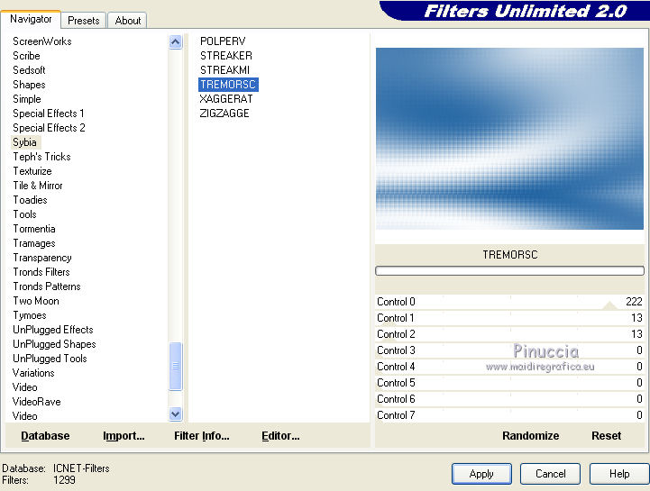Effets>Modules Externes>Filters Unlimited 2.0 - Sybia - Tremorsc, par défaut.